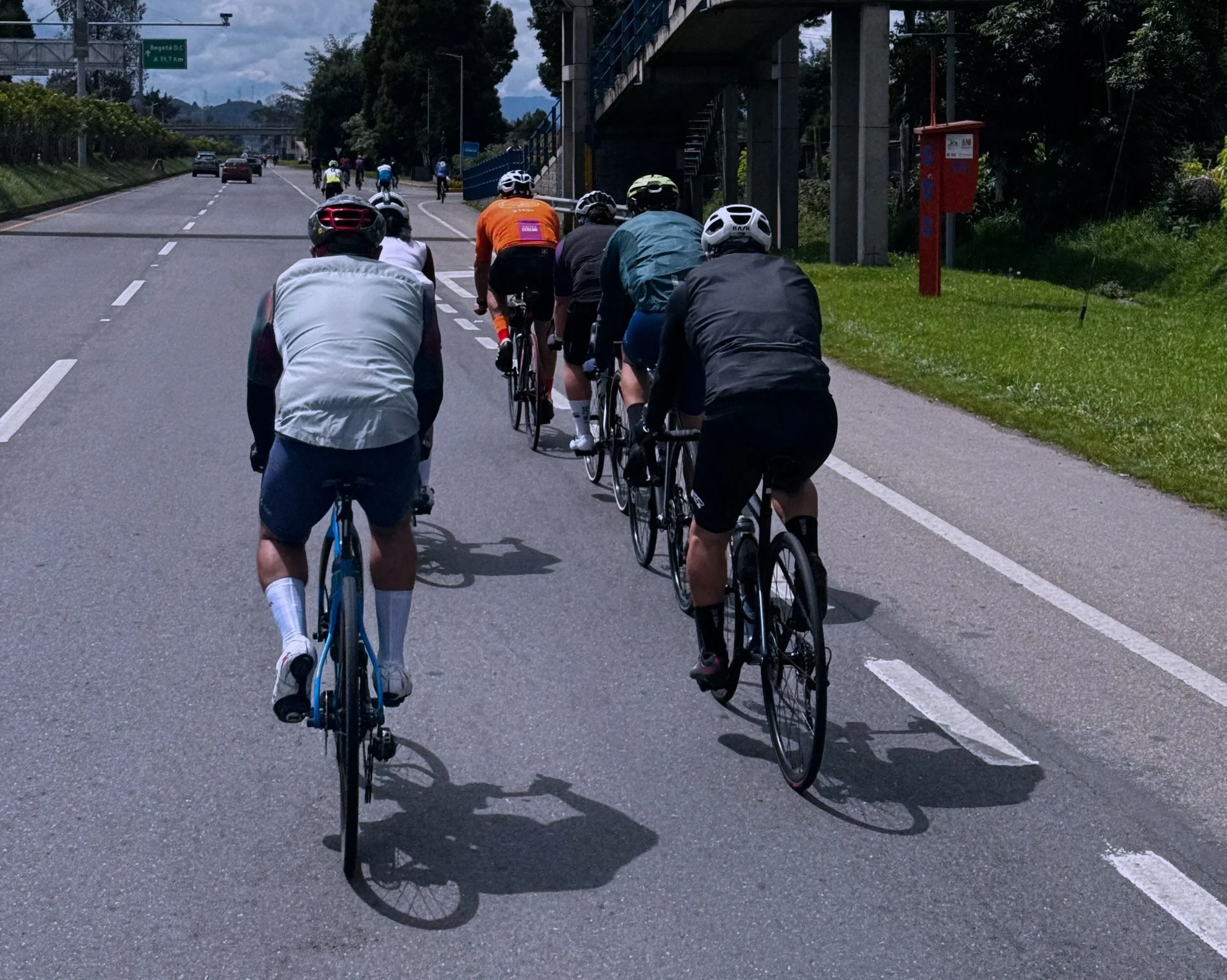 Entrenamiento presencial de ciclismo guiado por profesionales, con sesiones estructuradas en ruta, enfoque técnico y control del esfuerzo para mejorar rendimiento, resistencia y confianza sobre la bicicleta.